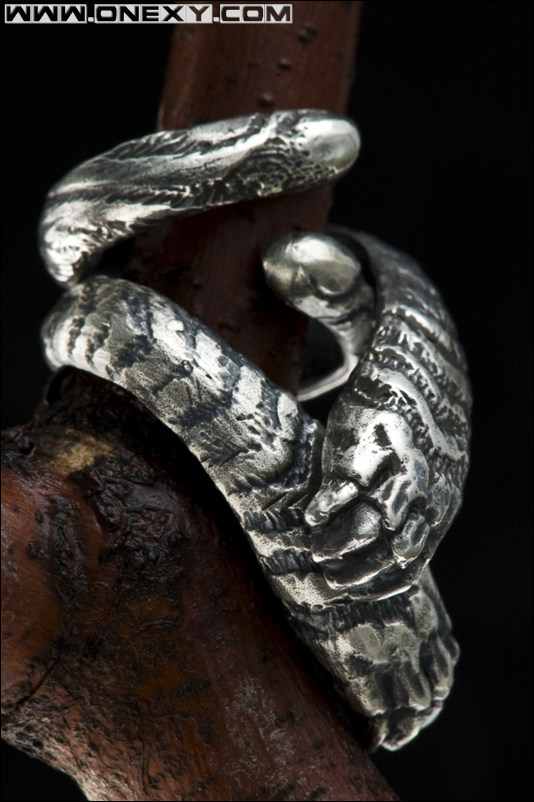 作者曾深受南美北非原始文明的感染,对森罗万物皆有种偏执的热爱,在走遍世界的旅途中品味着古人对野兽神性的崇敬。但即使身处世界之巅却也难以填实作者心中空旷的精神家园,于是为了寻回当代人类早已被物欲主义所消磨尽矣的纯真自我,而展开了一次野性蛮荒的灵魂探索。设计师打破近现代传统首饰的抽象表现主义,以革命性的全新外侧者视角诠释艺术的多元语式。细腻超写实的粗旷笔触与新型微雕工艺的巧妙结合打造了质朴阳刚的《兽图腾》系列,适合品味独到且大气稳重的成功人士。宝丽石材质手感厚重,并有多种鲜艳色彩搭配,是彰显个性的不二之选;925纯银材质与宝石兽瞳的组合则以低调深邃的品格映衬拥有者的不菲身价。